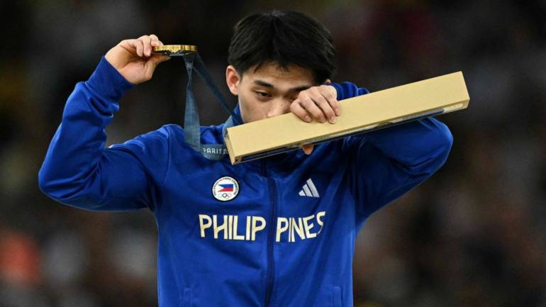 Philippines' gymnast Carlos Yulo credits God for winning two golds at Paris Olympic Games