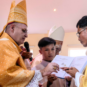 The bishop went to the Mary of Smile Chamkar Teang parish in Takeo Province on April 28 and distributed 100,000 riel (25USD) to each family.