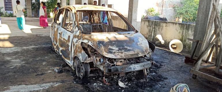 “Our hamlet is inaccessible to firefighters, so we had to put out the fire ourselves to save God’s house,” he said. The car was completely destroyed by the fire while the church was partially damaged.