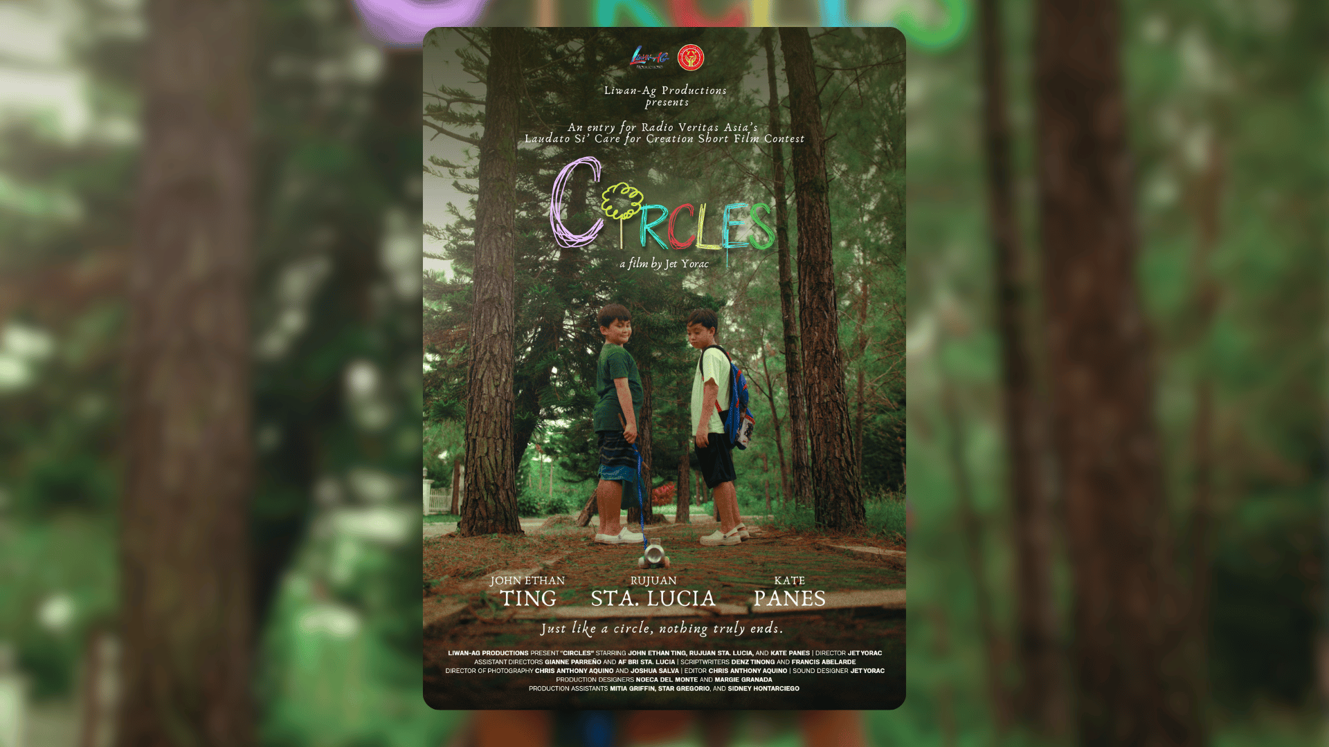 The beauty of Circles also lies in the collaborative effort behind it. Produced by Liwan-Ag Productions, the film brings together writers Denz Joshua Tinong and Francis Venlaurence Abelarde, cinematographers Chris Anthony Aquino and Joshua Salva, and a young cast led by Jon Ethan Ting and Rujuan Sta. Lucia. Together they create a film that is simple yet deeply reflective.