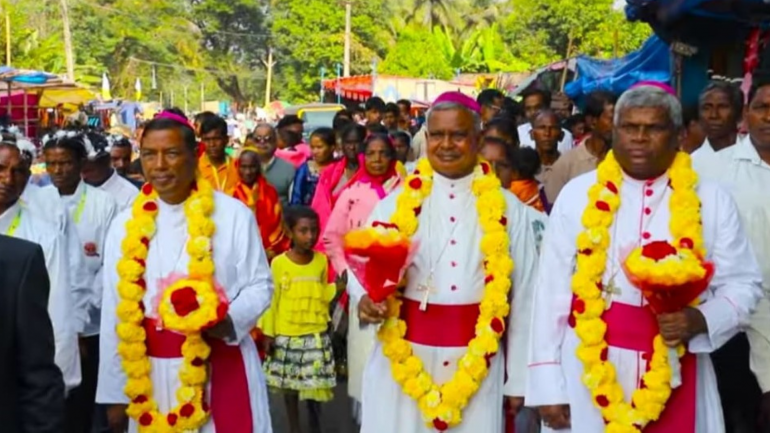 Around 10,000 faithful gathered for the occasion, including three bishops—Bishop Aplinar Senapati, CM, of Rayagada; Bishop Sarat Chandra Nayak of Berhampur; and Archbishop John Barwa, SVD, of Cuttack–Bhubaneswar—along with 40 Catholic priests and 50 religious sisters.