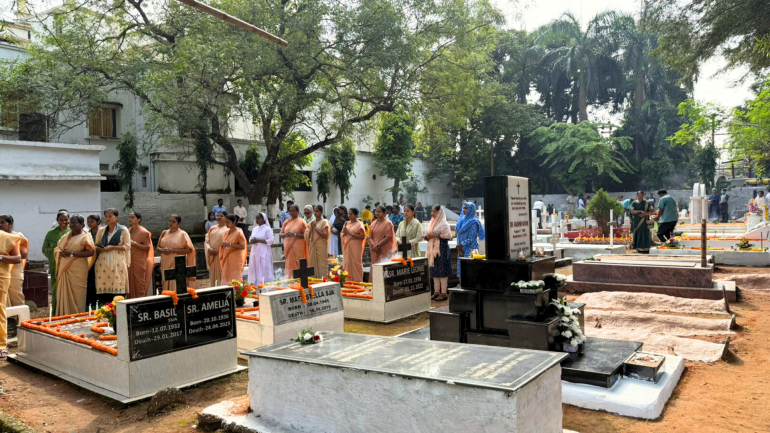 At the cemetery of St. Vincent’s Pro-Cathedral Parish in Bhubaneswar, clergy, religious, and lay faithful gathered for a solemn Eucharist and candle-lighting ceremony. Fr. Asis Digal, the parish’s associate priest, offered prayers for the eternal rest of the martyrs.