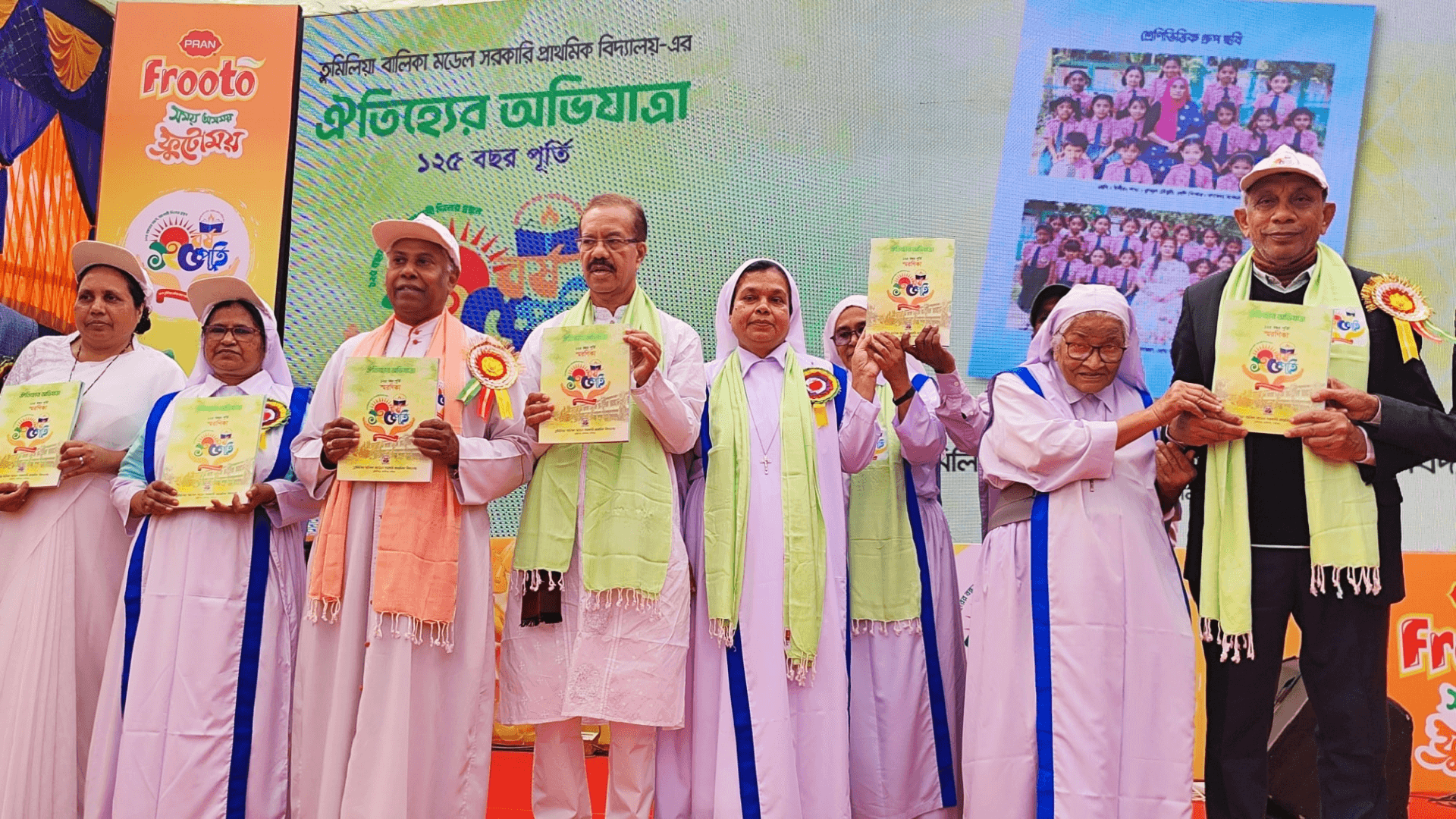 Archbishop Bejoy N. D’Cruze, OMI of Dhaka, unveiled a commemorative souvenir during the event and praised the school’s enduring legacy.