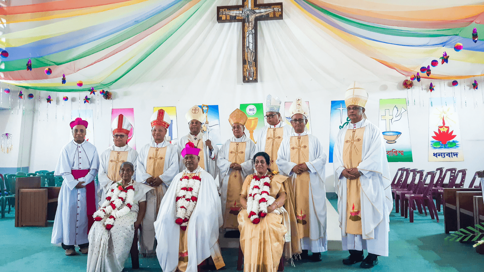 The Holy Mass was presided over by Archbishop Bejoy N. D’Cruze of Dhaka, with concelebration by Archbishop Lawrence Subrata Howlader of Chittagong, Bishop Romen Bairagi of Khulna, Bishop Paul Ponen Kubi of Mymensingh, Bishop Joseph Shorot Gomes of Sylhet, Auxiliary Bishop Subrata B. Gomes of Dhaka, and retired Bishop Theotonius Gomes.