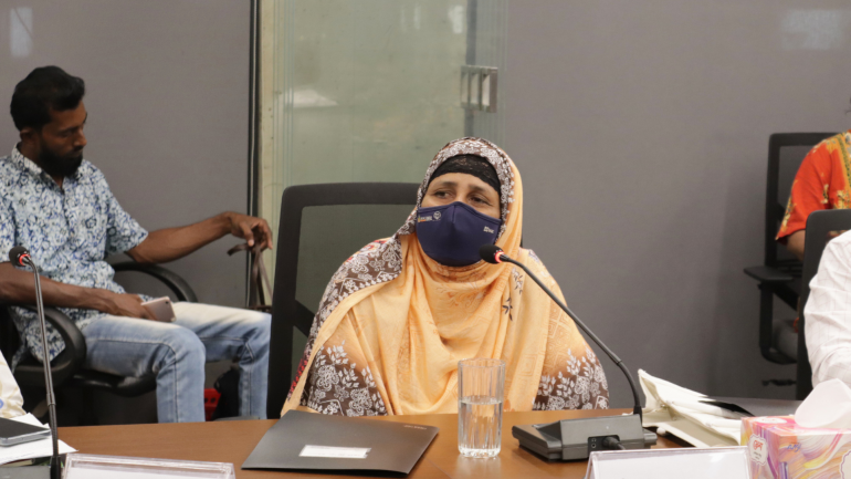 Representing affected communities, Sabina Khatun from Khulna recalled losing her home during Cyclone Aila. “I did not get a national ID or access to support programs,” she said, highlighting gaps in assistance for displaced families.