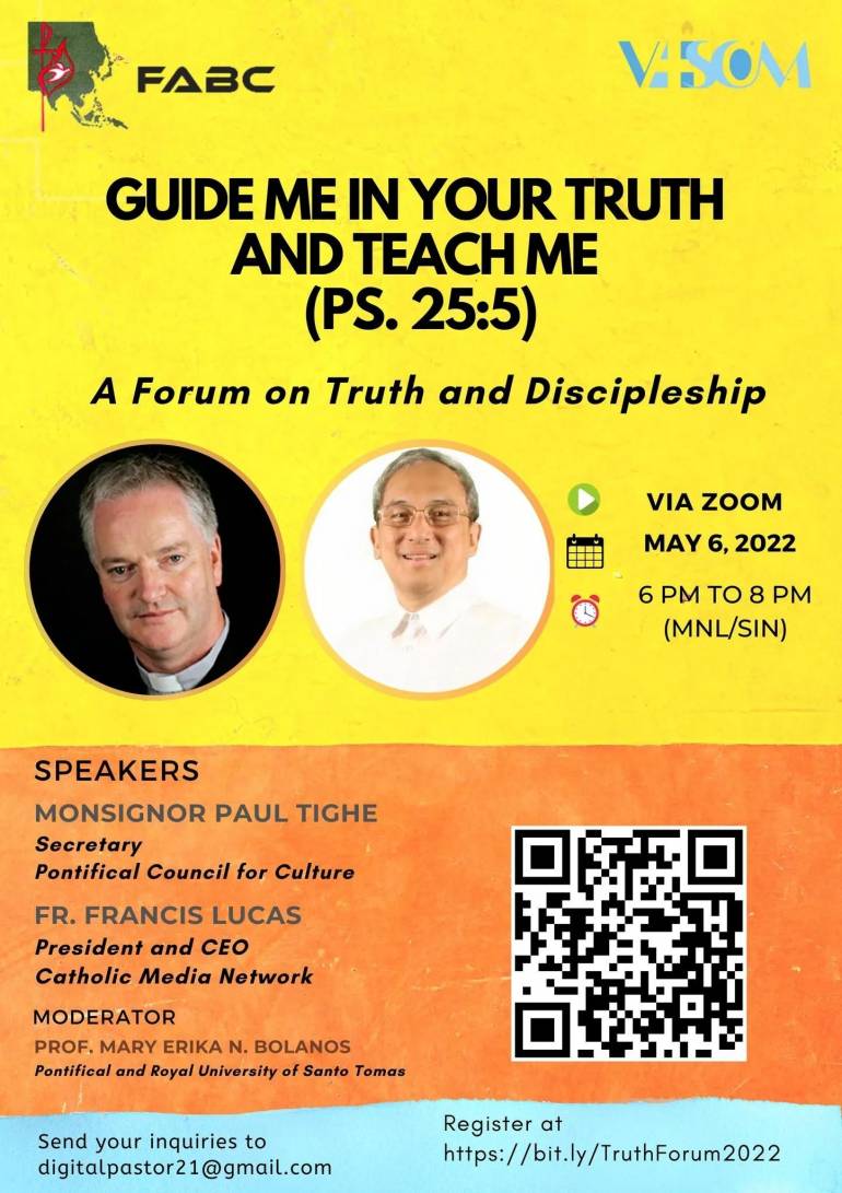 An Asian bishops’ institute—Veritas Asia Institute for Social Communication (VAISCOM)—will hold an online forum on truth and discipleship 6-8 in the evening Manila time on May 6, 2022.