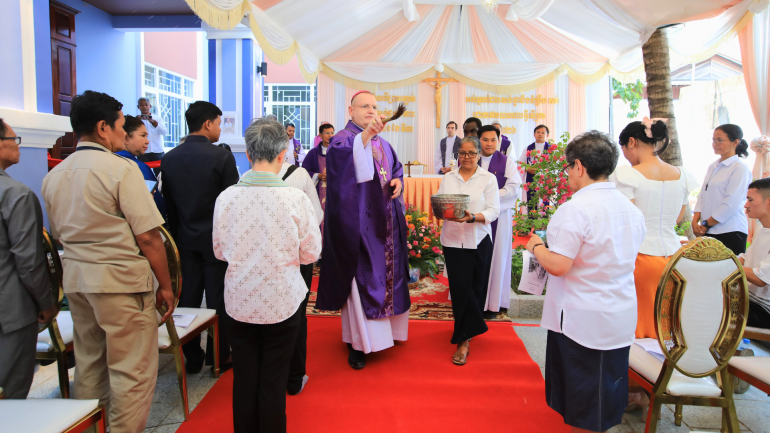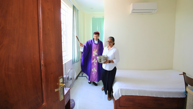 The Adoratrices Sisters (Handmaids of the Blessed Sacrament and of Charity) inaugurated their new home in Phnom Penh on March 20, with a blessing ceremony led by Bishop Olivier Schmitthaeusler, Apostolic Vicar of Phnom Penh and Coadjutor Bishop Pierre Suon Hangly.