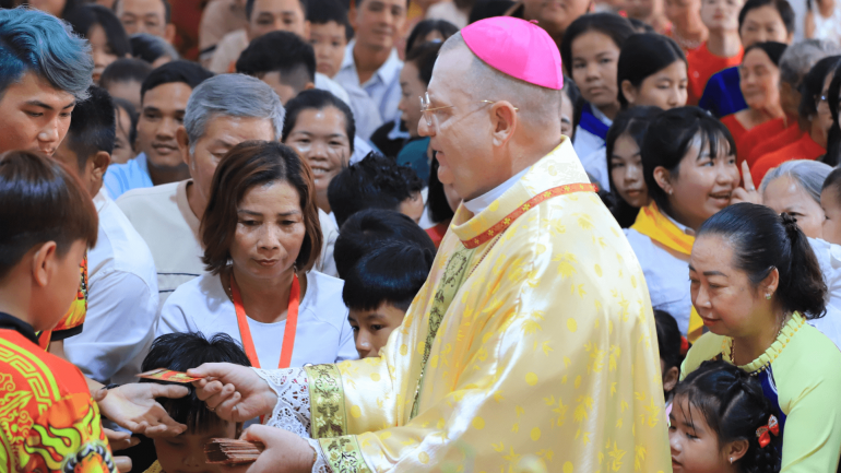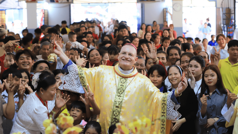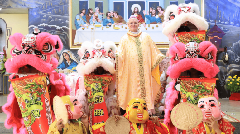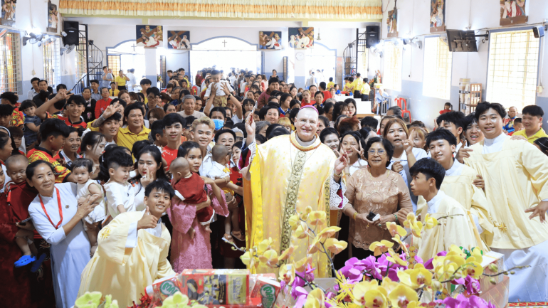 The Apostolic Vicariate of Phnom Penh observed the Chinese New Year with a solemn Mass presided over by Bishop Olivier Schmitthaeusler on February 19. The Mass was held at St. Joseph’s Parish in Chrey Thom, Kandal Province, part of the Bassac Pastoral Center within the Apostolic Vicariate of Phnom Penh. The celebration drew a large number of faithful.