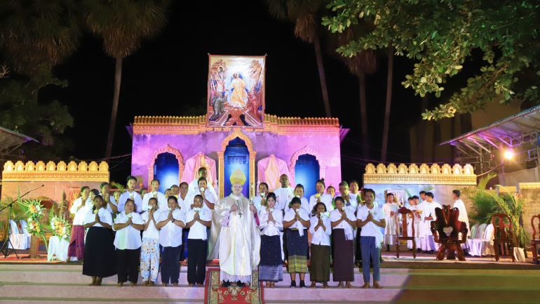 Bishop Olivier Schmitthaeusler, Apostolic Vicar of Phnom Penh, presided over the Easter Vigil service at St. Mary of the Smile Church in Chamkar, Takeo Province, about 92 kilometers from the capital, Phnom Penh, administering baptism to 152 catechumens.