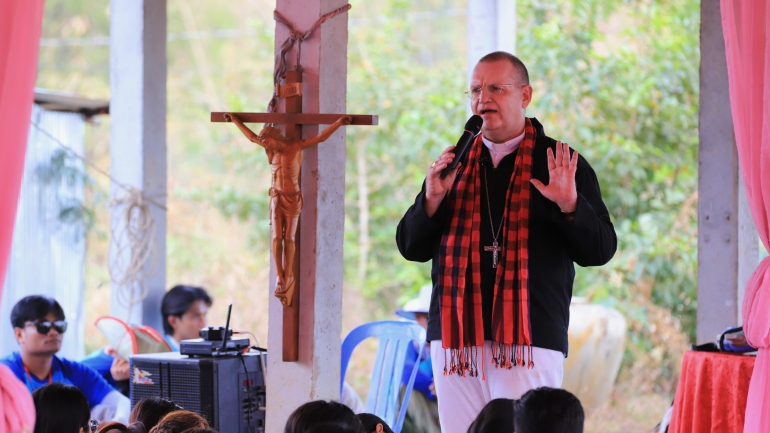 The pilgrimage featured two catechetical sessions led by Bishop Olivier Schmitthaeusler, Apostolic Vicar of Phnom Penh.