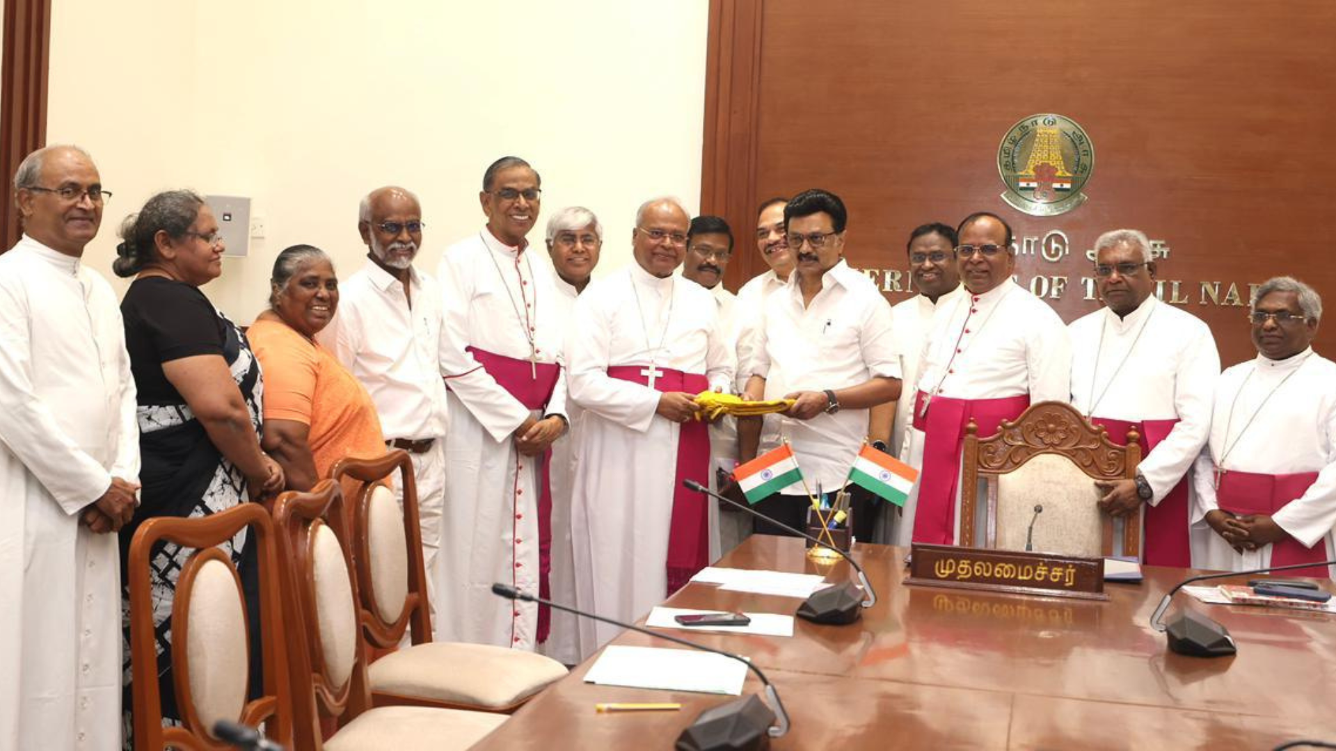 Among those who met the Chief Minister were Archbishop George Antonysamy of Madras–Mylapore and TNBC President; Bishop Lawrence Pius of Dharmapuri; Bishop Neethinathan of Chengalpattu; Bishop Jeevanandam of Kumbakonam; and Bishop Lourdes Anantham of Sivagangai.