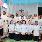 Bishop Olivier Schmitthaeusler, the apostolic vicar of Phnom Penh, co-sponsors and supports Coco de Takeo, a small handicraft business in Chamkar Teang village, Kous commune, Tram Kak district, Takeo province.