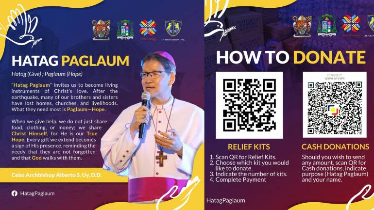 In the same social media post, Archbishop Abet announced that the Archdiocese of Cebu, through Cebu Caritas, Inc., is launching “Hatag Paglaum” (Give Hope), a relief and fundraising campaign for earthquake victims in partnership with a private foundation.