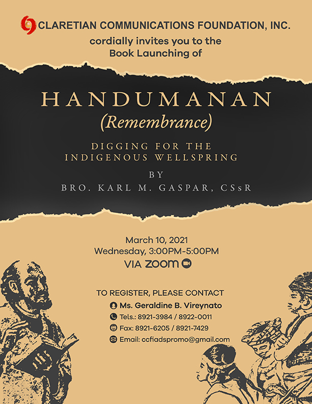 Brother Karl M. Gaspar wrote the book "Handumanan (Remembrance): Digging for the Indigenous Wellspring," published by Claretian Communications Foundation, Inc. in 2021. The book has more than 400 pages.