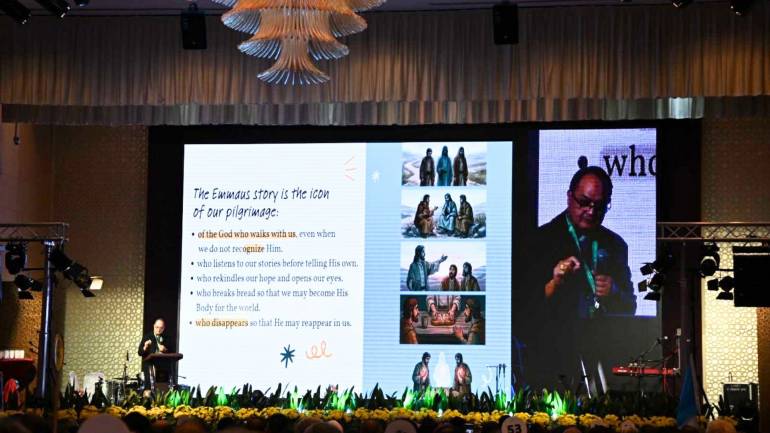 The Emmaus account is the model: Jesus listens, receives the disciples’ narrative of disillusionment, and only then retells the same story in the light of the Resurrection. “If it is not happy, it is not yet the end,” Cardinal David said. “We retell our stories with Jesus until they reach their true ending, redemption.”