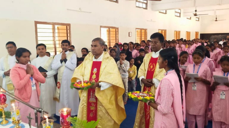 “St. Catherine Labouré is fondly remembered today for her love and service for humankind. In a world where everything seems fleeting—where time erases monuments and memory softens even the sharpest pains—two forces defy decay: love and service,” said the main celebrant, Fr. Pradosh Chandra Nayak, Vicar General of the Archdiocese of Cuttack-Bhubaneswar, in his homily.
