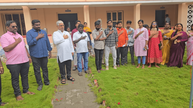 Following the flag hoisting, movement pledge, and reading of the Preamble of the Indian Constitution, participants attended a keynote session titled “Election Arena and Youth Political Engagement”, delivered by Mr. Aseervatham, State Coordinator of People’s Watch.