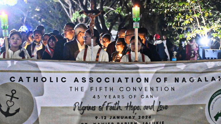 The Catholic Association of Nagaland (CAN) held its fifth convention from January 9 to 12, 2026, at St. Xavier Parish, Jalukie. Hosted by the Zeliangrong Catholic Association of Nagaland (ZCAN), the four-day gathering carried the theme “Pilgrims of Faith, Hope, and Love.”