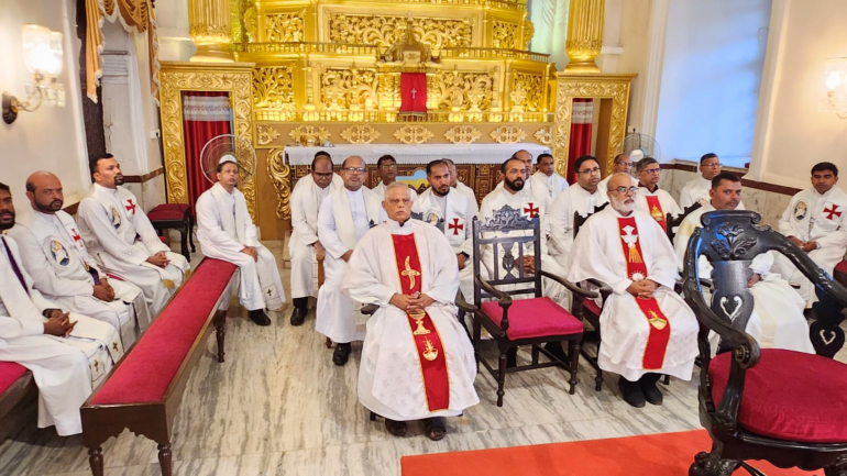The Mass was presided over by Fr. Romeo Monteiro, chancellor of the Archdiocese of Goa and Daman, and concelebrated by 22 priests. The liturgy was supported by the choir of Perpetual Succour Convent High School, Navelim.