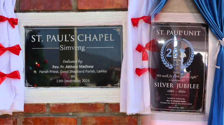 The long-cherished dream of the Catholic faithful of Simveng, in Churachandpur District, southern Manipur, became a reality with the blessing and inauguration of the newly constructed St. Paul’s Chapel, coinciding with the celebration of its Silver Jubilee, under Good Shepherd Parish, Lamka, on Saturday, December 13, 2025.