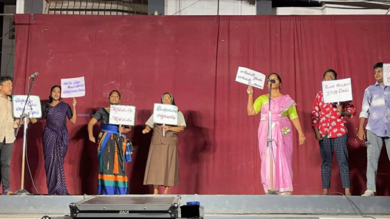 The play, titled “Not a Silent Spectator, but a Martyr” (Tamil: Mouna Satchi Alla Maraisatchi), was performed on March 6 by members of the parish youth movement. The performance followed the Stations of the Cross and Holy Mass on Friday evening as part of the parish’s Lenten observances.