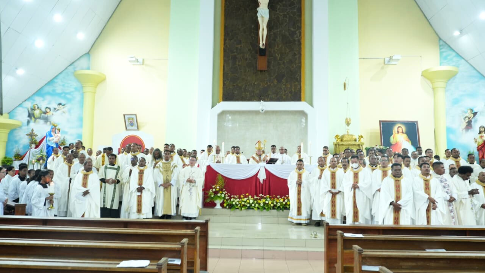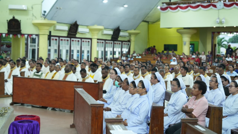 The gathering was organized by the Diocesan Priests of the Archdiocese of Merauke, in collaboration with UNIO Indonesia, the Archdiocese of Merauke, the Merauke Regency Government, and various lay organizations including the Catholic Women’s Association (WKRI) and the Divine Mercy Community.