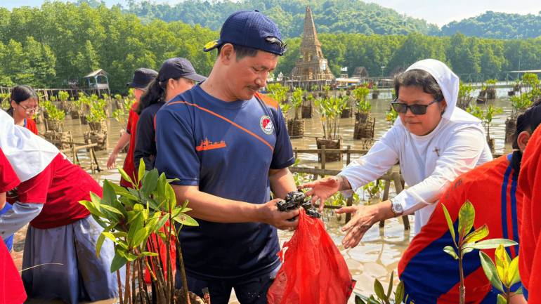 The activity marked Phase 2 of a mangrove planting initiative launched in November 2025. The program is coordinated by Sr. Vincentia HK of the Congregation of the Sacred Heart, who also chairs the Environmental Education Program of the Laudato Si’ Indonesia Group.