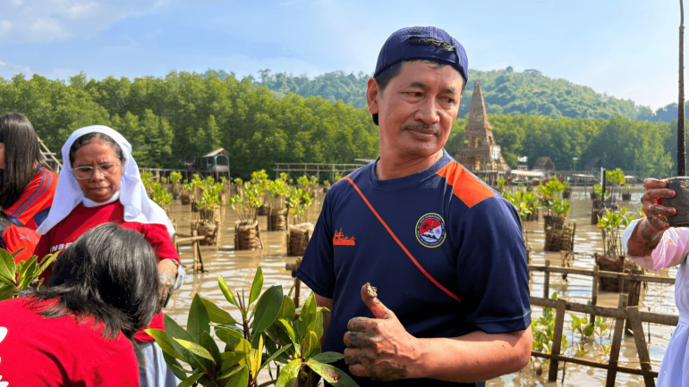Indonesian Prelate Leads Mangrove Planting Drive in Lampung