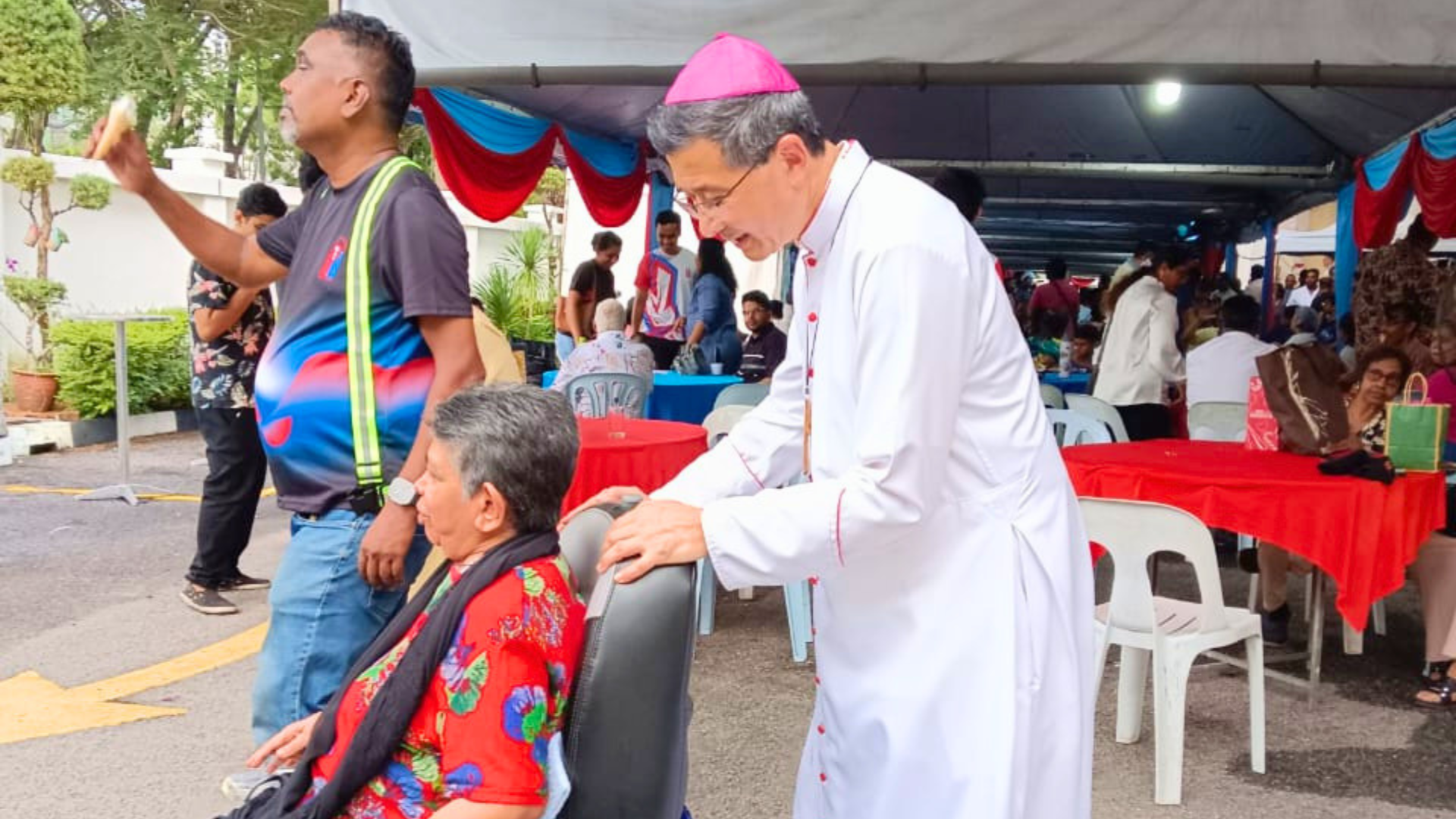 On Divine Mercy Sunday at the Church of the Divine Mercy in Shah Alam, Selangor, West Malaysia, Archbishop Julian Leow Beng Kim of Kuala Lumpur personally pushed the wheelchair of a disabled devotee, Gladys Fernandez, to a Mobility Service van after Mass, a simple act that became the most memorable moment of her pilgrimage.