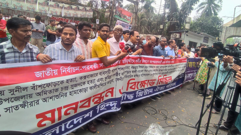 Subrata Hazra, Joint Secretary General of the Bangladesh Christian Association, said minority communities were once again forced to protest for their basic safety soon after the elections. He noted that many had hoped for a fresh start under the new administration that emerged from the country’s recent anti-discrimination movement, but those expectations had yet to materialize.