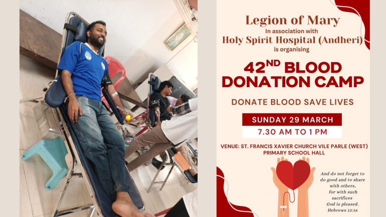 The Legion of Mary from St. Francis Xavier’s Church in Ville Parle, a suburban parish in Mumbai, western India, organized its 42nd blood donation camp on March 29 under the theme “Donate Blood, Save Lives.”