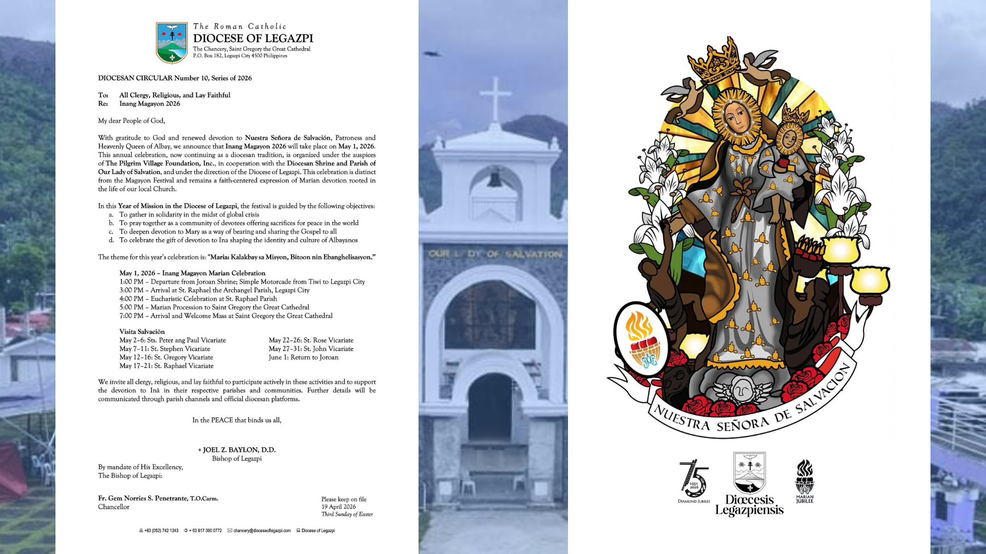 As conflicts persist across regions and communities continue to grapple with uncertainty, the Diocese of Legazpi, southeastern Philippines is framing this year’s “Inang Magayon” celebration as more than a traditional Marian gathering. Declared within its “Year of Mission,” the 2026 observance subtly positions local devotion as a response to a world in crisis.