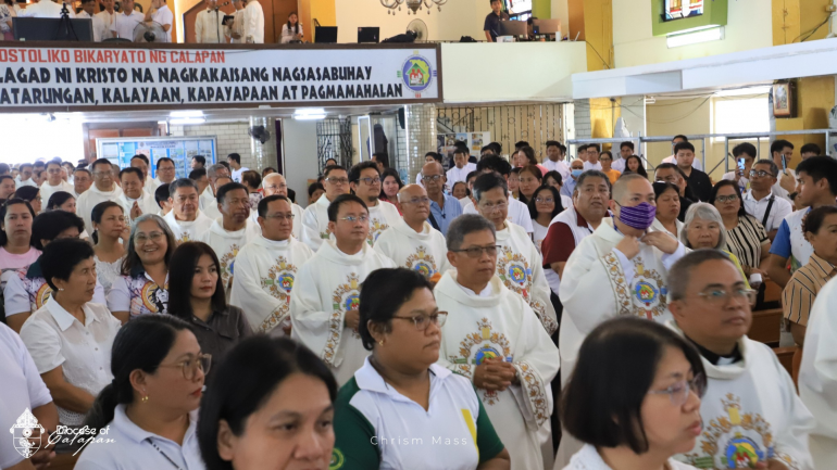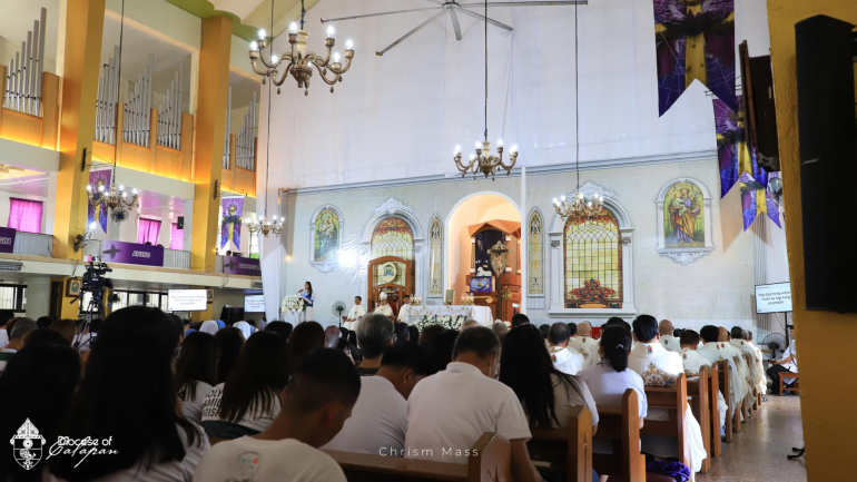 A day after Pope Leo XIV elevated the Apostolic Vicariate of Calapan—located in Oriental Mindoro in the central Philippines—to a diocese, the clergy gathered on March 26 at Sto. Niño Cathedral for the Chrism Mass, where they renewed their priestly vows with Bishop Moises M. Cuevas.