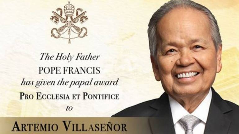 Pope Francis has bestowed the prestigious papal award Pro Ecclesia et Pontifice (“For the Church and the Pope”) upon the President of the Manila Metropolitan Cathedral-Basilica Foundation, former Chief Justice of the Philippines, Artemio V. Panganiban, Jr.