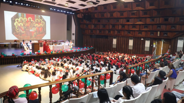 As early as 7:30 a.m., children aged 4 to 12—dressed in their best outfits—lined up outside the RVA auditorium, eagerly waiting for the celebration to begin. The half-day event opened with a Eucharistic celebration presided over by RVA General Manager Fr. Felmar Castrodes Fiel, SVD, together with several other priests, including Fr. John Mi Shen, Program Director of RVA, and Fr. Francis Han, Coordinator of the Mandarin Language Service.