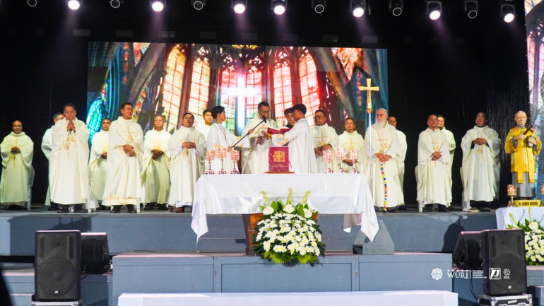 The celebration opened with a solemn Eucharistic Mass at the DWCC Gymnasium, presided over by Fr. Thomas M. Priela, chancellor of the Apostolic Vicariate of Calapan. Concelebrating were SVD priests and a diocesan priest from Oriental Mindoro, together with DWCC administrators and novices from the vicariate.