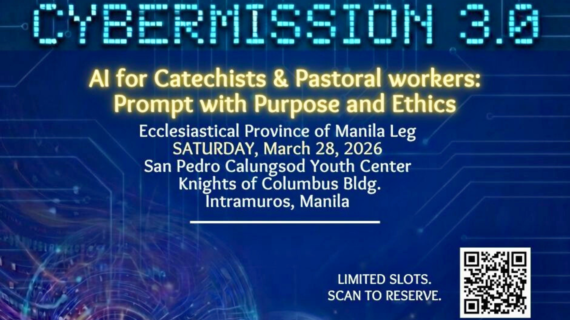 SIGNIS Philippines will hold Cybermission 3.0 on March 28, 2026, at the Pedro Calungsod Youth Center in Intramuros, Manila. The one-day seminar-workshop aims to equip catechists, youth leaders, and social communicators with practical skills to integrate Artificial Intelligence (AI) into pastoral ministry while maintaining ethical and human-centered practices.
