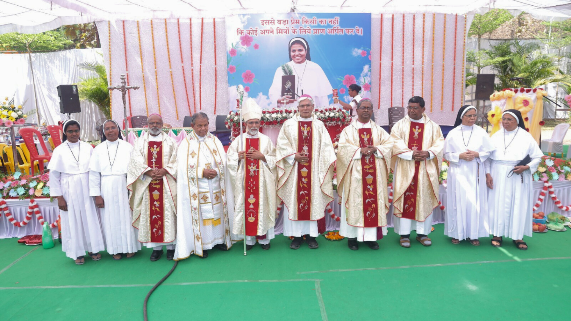 The Eucharistic celebration was presided over by Bishop Peter Rumal Kharadi of Jhabua. Concelebrants included Archbishop Mar Sebastian Vadakel, Bishop Joseph Thikkattil of Gwalior, Archbishop Leo Cornelio SVD, Bishop Chacko SVD and Bishop Thomas Mathew of Indore.
