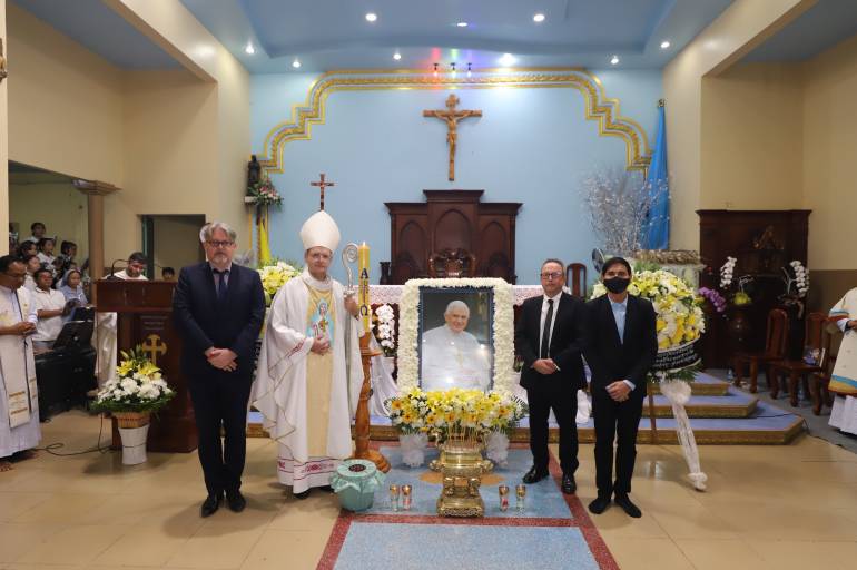 "We thank God for the presence of Pope Emeritus Benedict XVI, who has worked to help the church walk in the path of God, helping Catholics to know God better through his theology that guides Catholics people to understand God more and more,” said Deacon Vy Samnang at a memorial sermon.