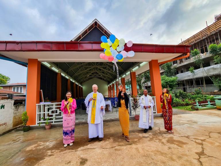 The Myanmar Jesuits together with Jesuit Father Mark Raper, the former major superior who started the project of building the Ignatius Multipurpose Hall, had the blessing and inauguration of their new building at St Aloysius Gonzaga College at Taunggyi in Shan state on May 22.
