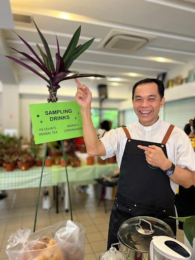 A parish priest of a Jesuit-run church in the Archdiocese of Singapore sold herbal tea during a Farmers’ Market of the Gardening Group of the Green Movement on September 24.