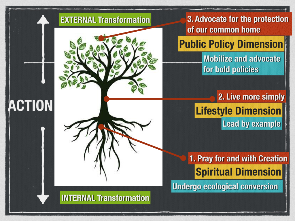 The eco-reflection begins with a reading from Laudato si' followed by a short reflection and "eco-actions."