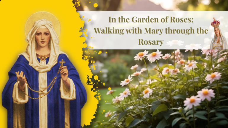 St. Bernard, in his sermon, honors Mary with these words: “Eve was a thorn, wounding, bringing death to all; in Mary we see a rose, soothing everybody’s hurts, giving the destinies of salvation back to all.” Mary, the highly favored one, leads us through this garden of roses, clothing us with the armor of faith to face life’s storms and giving us light to overcome the evils that trouble us as we reflect on the life of Christ. As the Queen of the Most Holy Rosary, she welcomes us into her loving care. When we open our hearts to her Son, Jesus, we find the graces we need, answers to our prayers, freedom from evil, and the gift of peace.