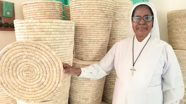 The women produce laundry baskets and fruit baskets made from date leaves and grass. Some of these are exported by local companies. “The women are happy,” Sr. Jacinta said. “Their lives have improved. I am happy to see their progress.”
