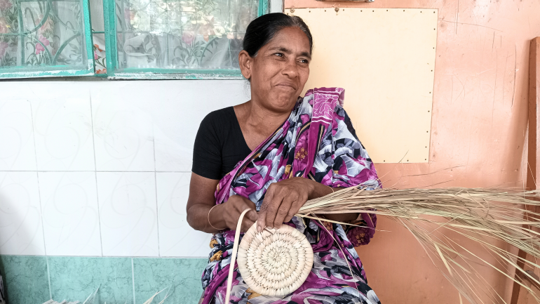In the beginning, the women produced embroidery and jute items. Later, they began crafting with local materials such as date leaves and grass. “We made some products and sent them to foreign buyers,” Sr. Jacinta said. “They liked them, and the demand increased.”