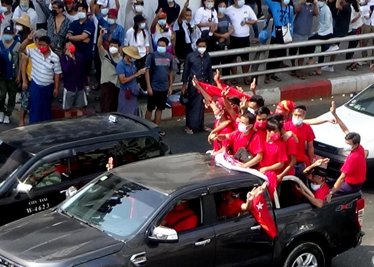 Hundreds of people, including members of the Catholic clergy, have signified support for protests in towns and cities across Myanmar in a show of defiance to the military takeover of their government.