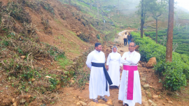 Bishop Jude Nishantha Silva visits flood- and landslide-affected communities in Madulsima and Lunugala on December 7.